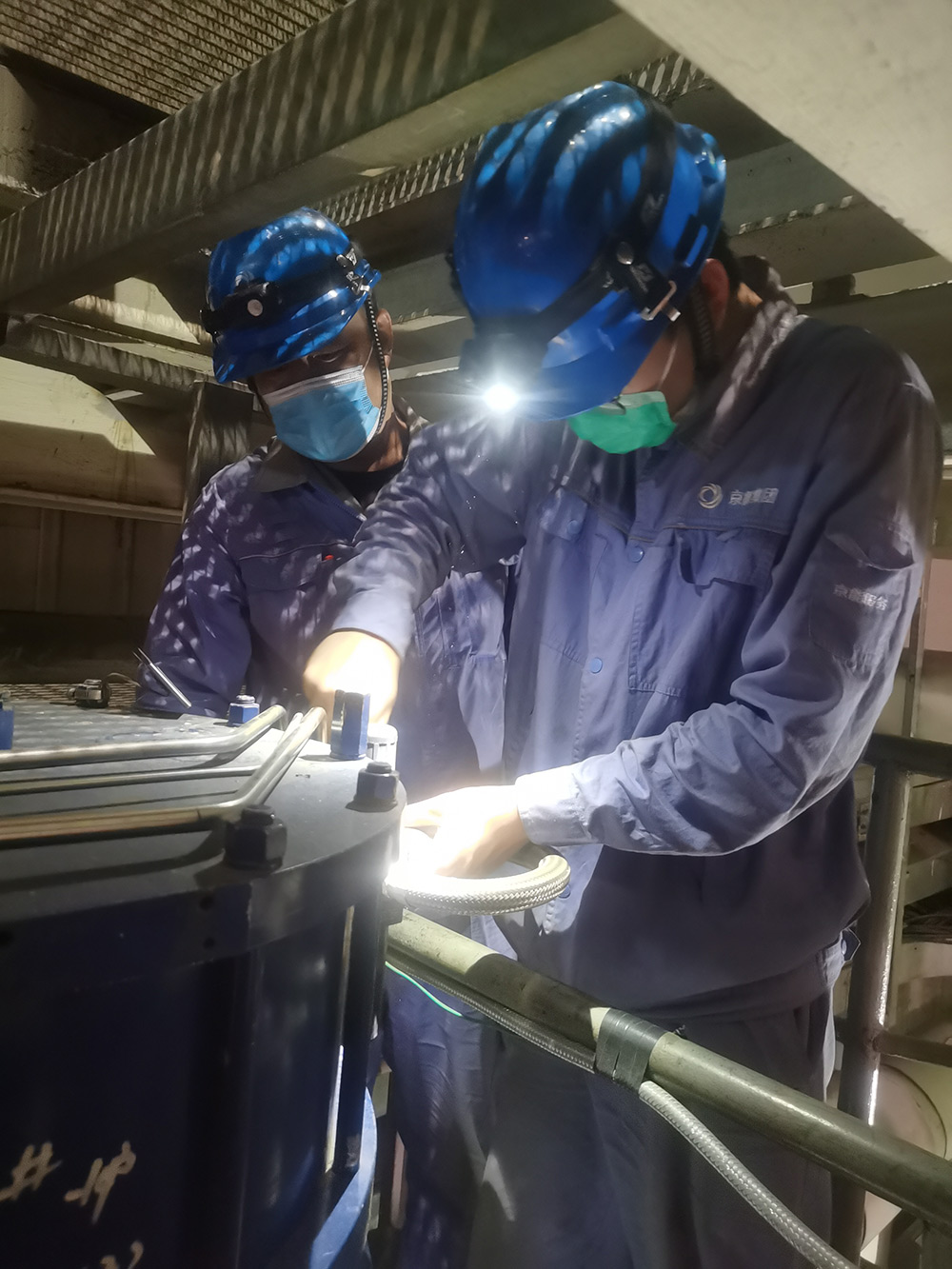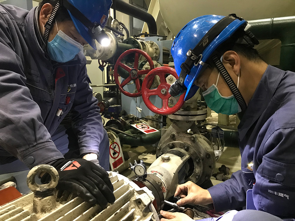 “疫”戰(zhàn)之下,很多工作按下暫停鍵。而京豐的工作卻刻不容緩。生產(chǎn)現(xiàn)場各種管道“叢林”、大大小小的設備中,忙碌的身影隨處可見。一邊是烤把加熱的呼呼聲,一邊是擰緊螺母的叮咚聲,口罩遮住了他們的面孔,心無旁騖的眼神注視向前,背上有汗,臉上有痕。熱火朝天的檢修工作在嚴格落實疫情防控措施的同時,安全有序地進行著。